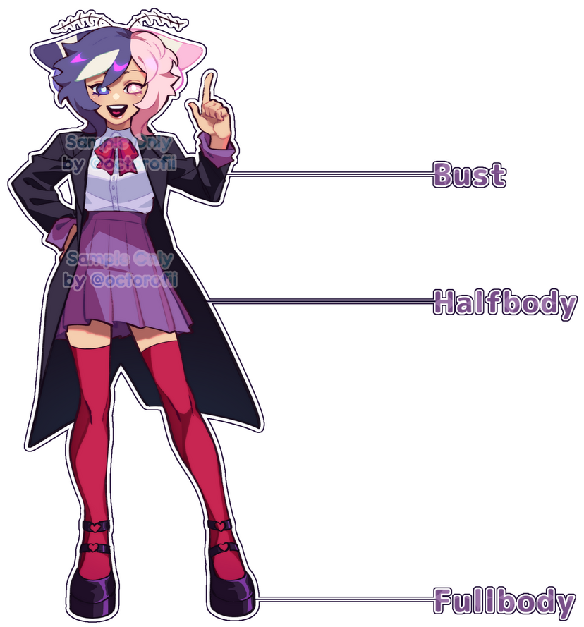 ❦ I'm capable of adapting to several anime styles, but I'm more familiar to KNY and Ace Attorney!❦ Price and style may alter depending on the character's complexity.❦ Complex props like Swords, or anything of the sort will cost a fee.❦ Backgrounds and Fancy Effects only apply to anime illustrations.
